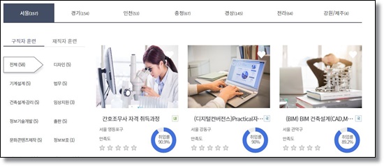 직업능력개발 훈련과정은 간편하게 검색할 수 있습니다.