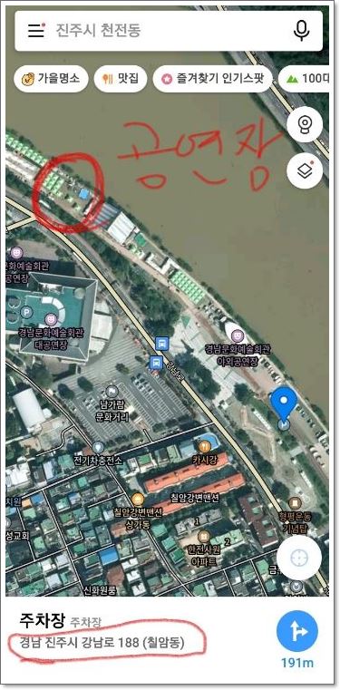 공연장소 - 경남 진주시 강남로 188(칠암동) 주차장